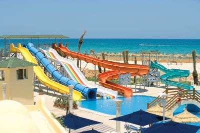 En bord de mer à environ 5 Km de Midoun. L'hôtel est légèrement en retrait (route à traverser), à 250 m de l'une des plus belles plages de Djerba. La plage est longue et continue sur 6 Km de l'hôtel Les Sirenes à l'ouest au cap rocheux Dar Djerba du complexe Yasmine à l'est. Transfert aéroport - hôtel : 30 mn environ (25 Km).